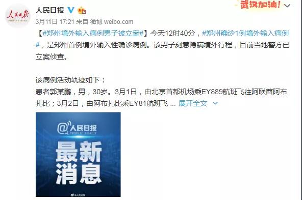 郑州市确诊1例境外输入新冠肺炎病例,该病例是郑州首例境外输入性确诊病例。