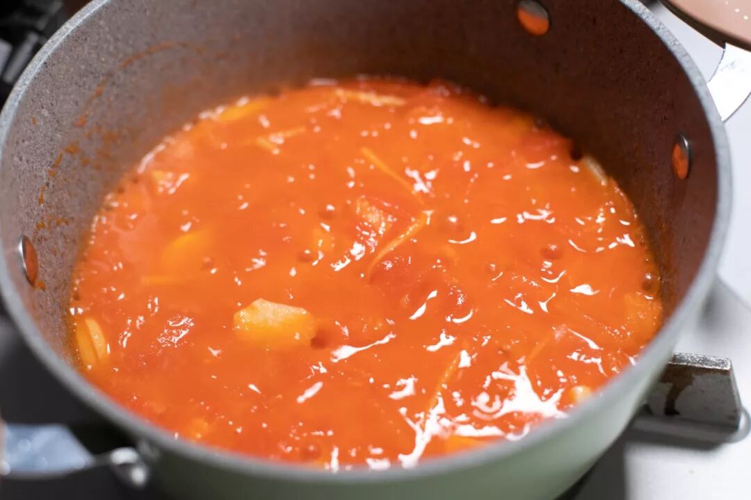 另一方面,番茄的酸性和维生素 C,能预防像土豆、山药、莲藕这种很容易被氧化的食材变色,而且这类蔬菜颜色一般是偏白色和淡黄色,和番茄一起烹饪,不仅颜色好看,口感也更加爽脆。